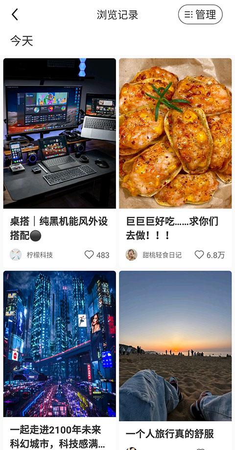 3、点击右上角的【管理】按钮,还可以自由删除浏览记录。