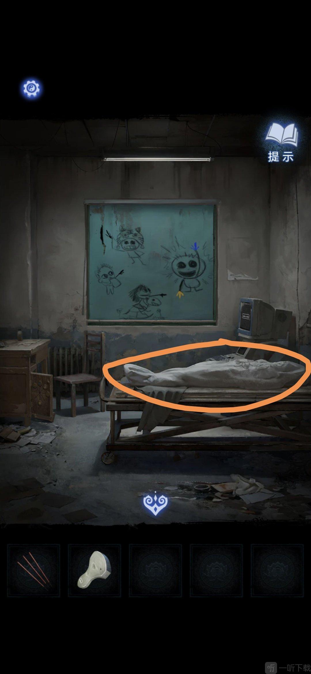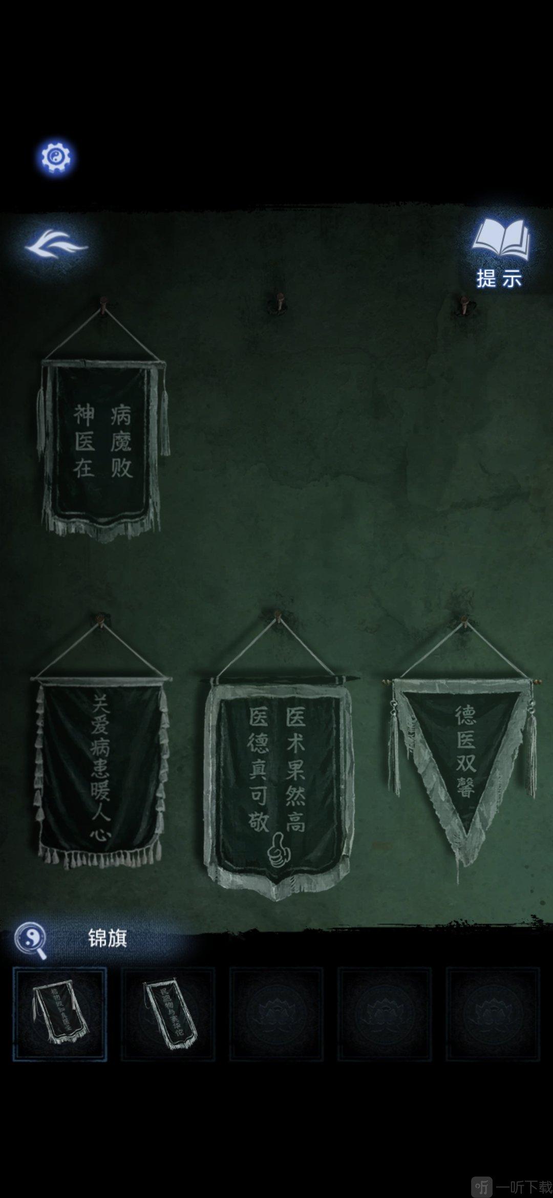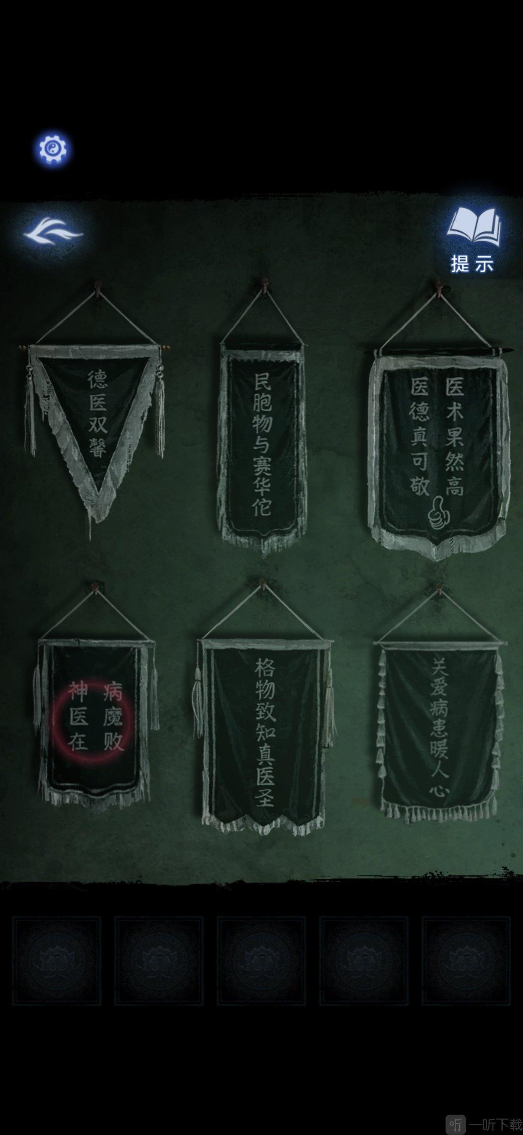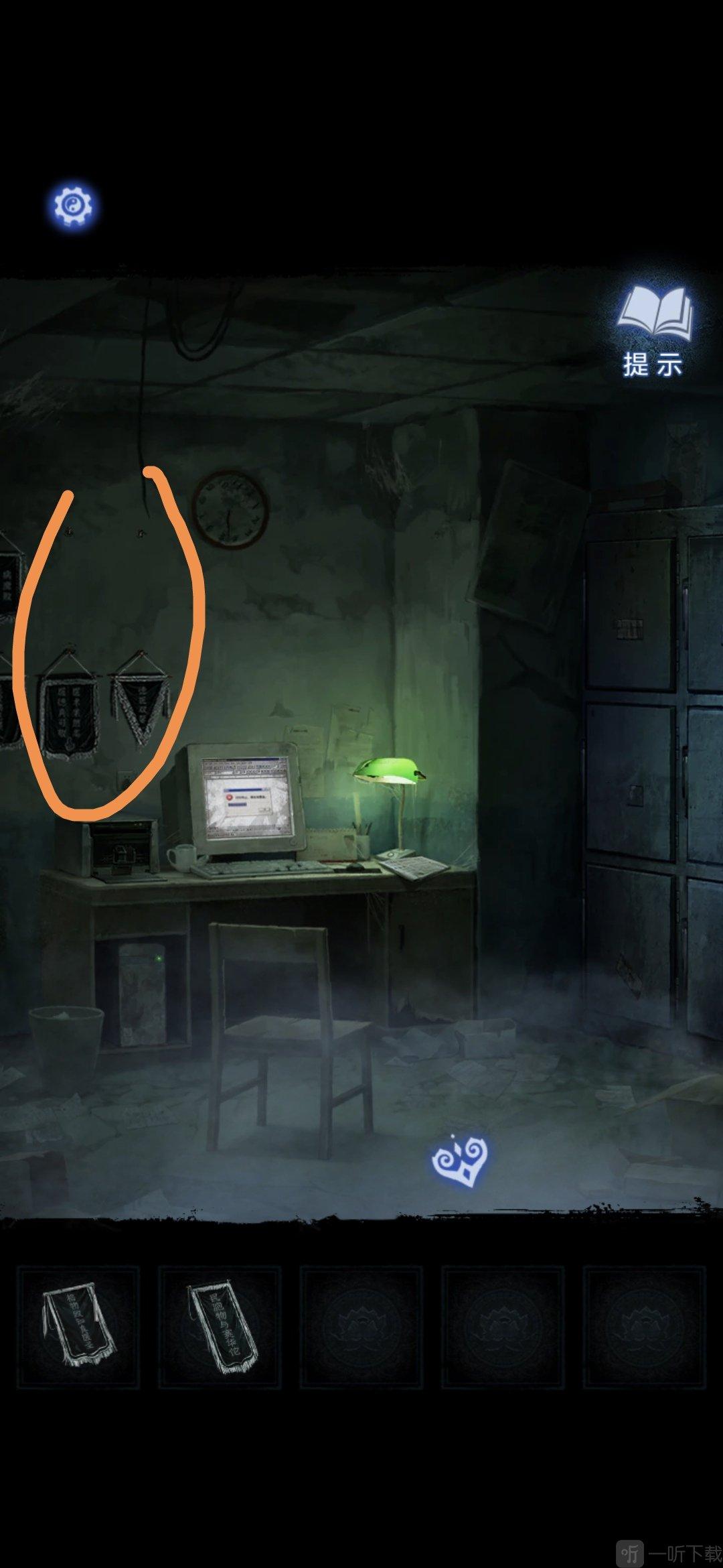 进入办公室,点击墙面,将锦旗挂在墙上,根据台灯下的资料排列锦旗顺序,打开停尸柜,获得香