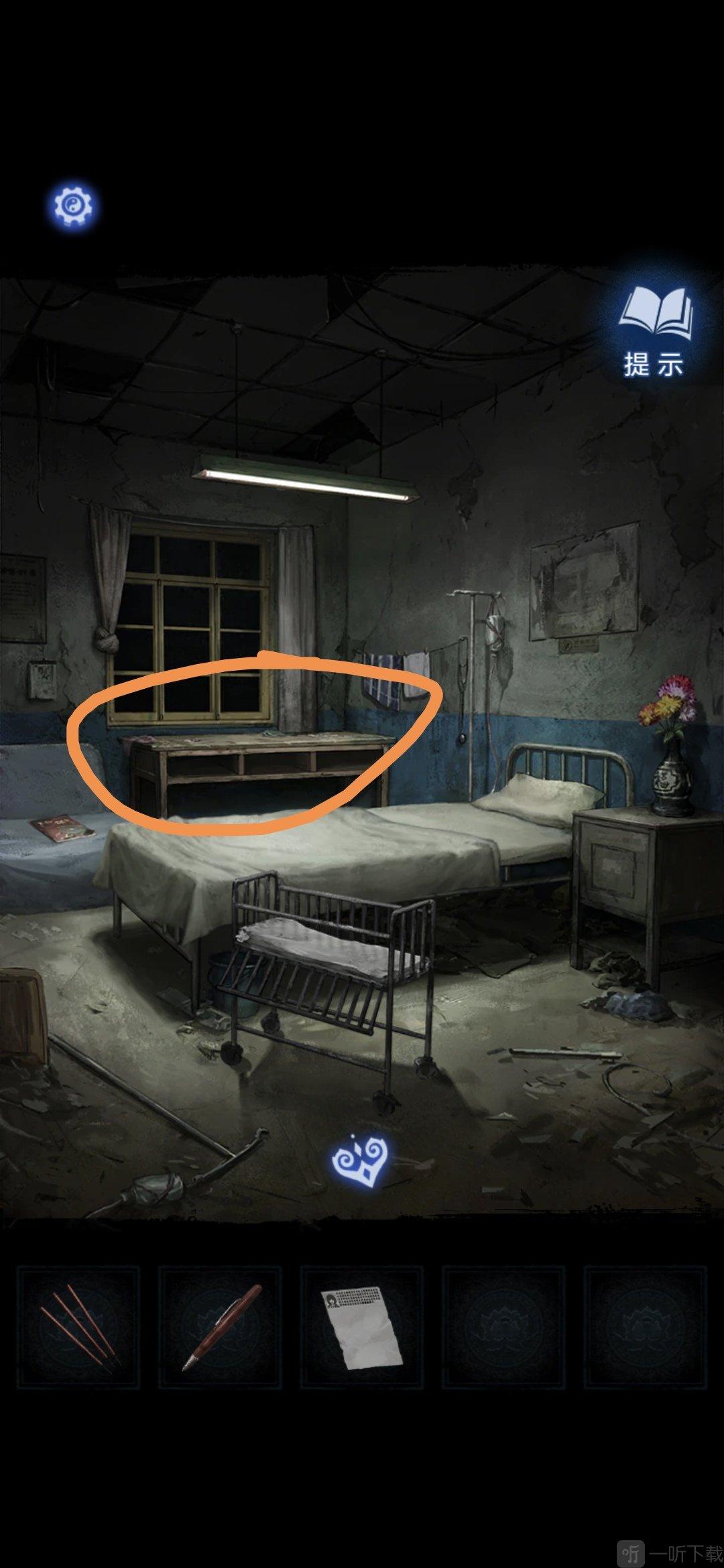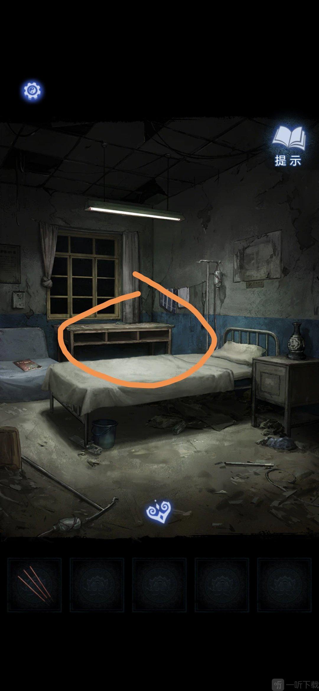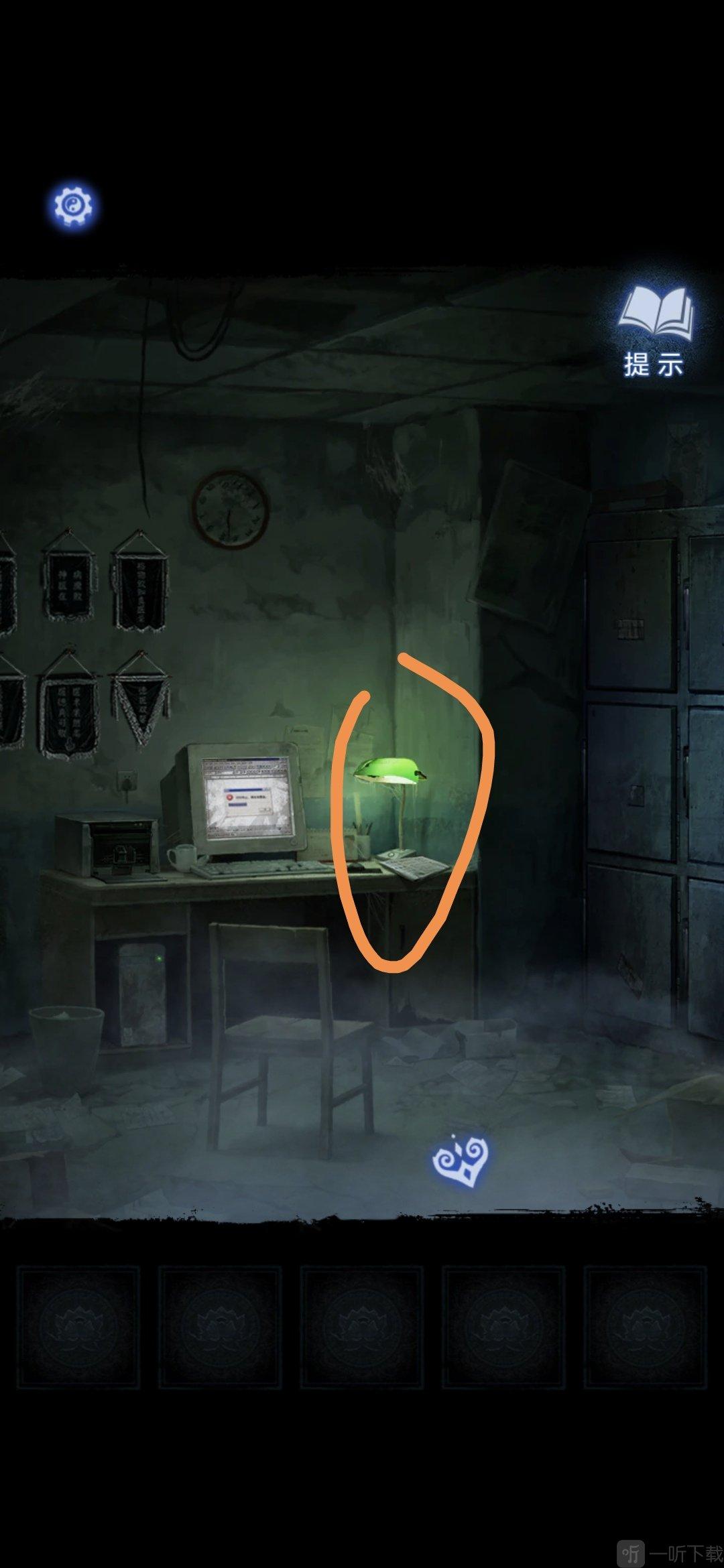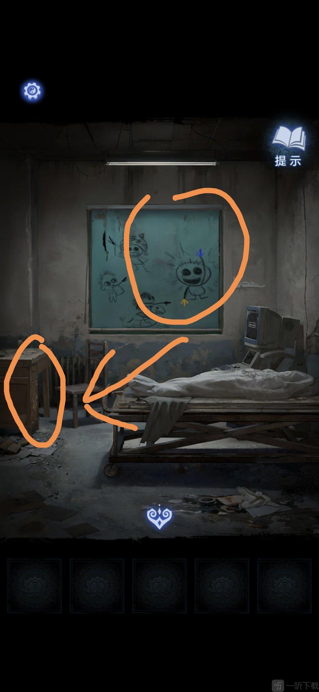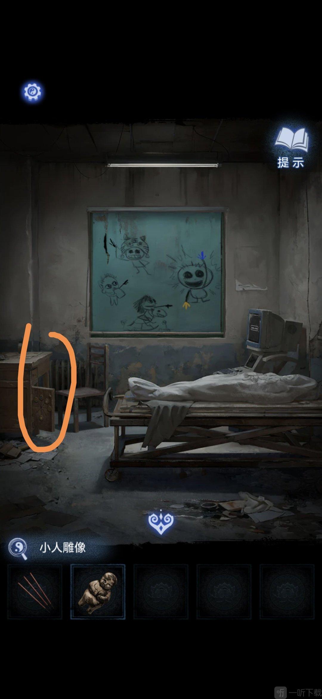 进入办公室,点击墙面,将锦旗挂在墙上,根据台灯下的资料排列锦旗顺序,打开停尸柜,获得香