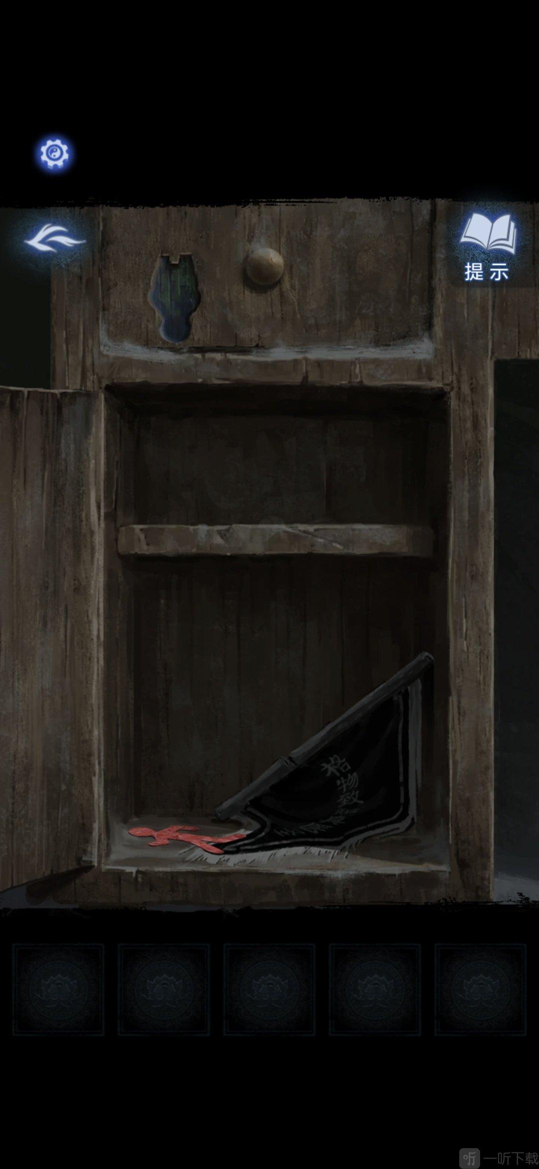 进门,根据正中央图案上小孩指的方向,可以打开柜子的锁,开锁后获得锦旗和剪纸小人