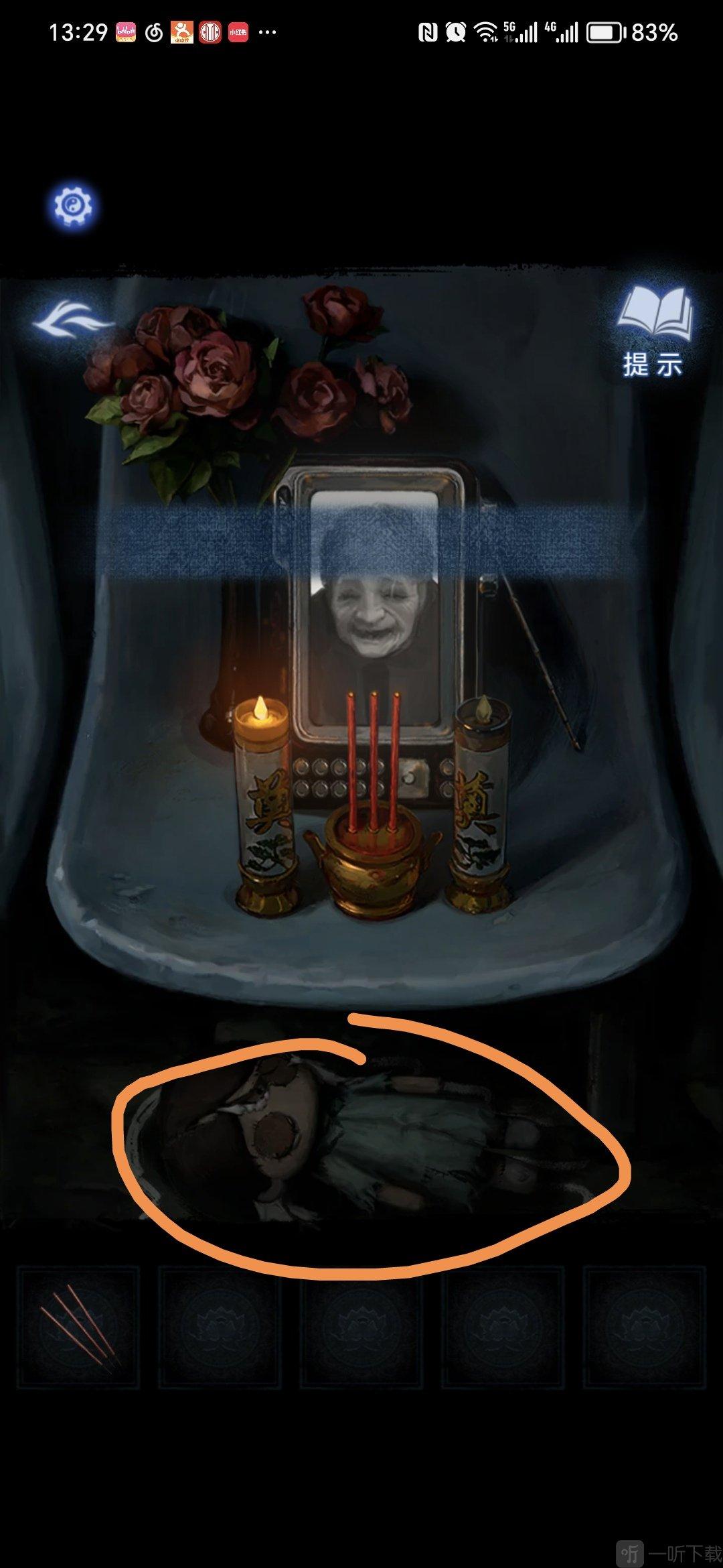 下楼,将布娃娃放在老奶奶的遗照前,获得小人雕像