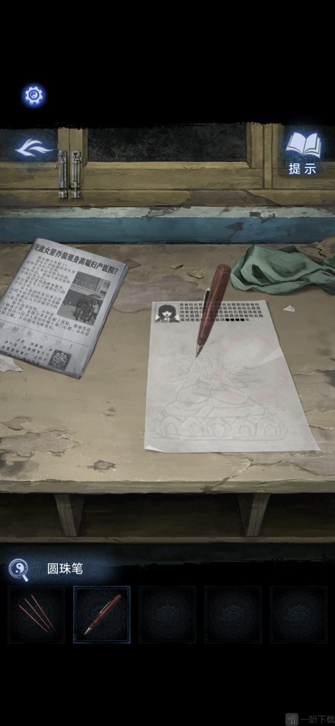进入特需病房402,将打印报告放在桌子上,用圆珠笔拓印桌子上的神像,获得画纸
