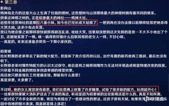 最近有关于艾丽丝方面的就是,弄哭五百年前的八重小妹妹,教小宵宫玩烟花,傲娇的神里第六次拒绝艾莉丝的偶像出道请求,和雷电影谈笑风生等等。以及之前刚去璃月的时候,钟离也是一路当艾莉丝的“向导”(破坏力强怕她把璃月炸了),全程陪同艾莉丝。看得出来艾莉丝其实是和七神同一辈分的人物,或者更长远也说不定。