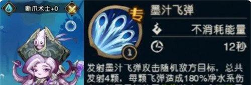 如果担心这样的阵容不稳,也可以考虑把一个输出的角色替换为控制角色,例如【断爪术士】,她的技能墨汁飞弹,如果敌人处于灼烧状态,会被强制沉默。