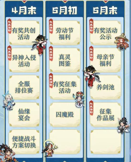 3、那这次说是5月初要上……如果这次说话算数,估计这周内就会发更新公告,大概率是这周四!别问为什么,我专门去翻看了官方以前的更新公告看,凡是要出大型新玩法和新内容,更新基本都在周四!所以预测一波~