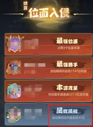 我今天才发现,位面入侵结束后,可以查看全场最佳的区服和修士!描述是最佳,但我点进去发现还有一个屡败屡战奖,活动期间被击败多少次……又没有奖励,这着实有点伤自尊了昂!