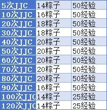 每天JJC买一次次数,12天共计120次JJC,可以来到最终档位,210粽子+550经验;