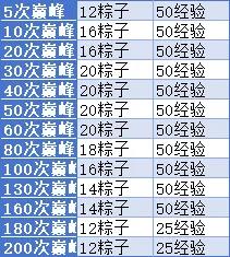 每天巅峰买一次次数,12天共计120次,可以来到100次档位,158粽子+450经验;