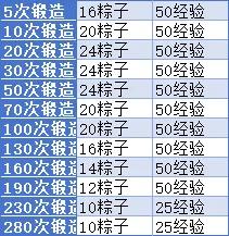 按照10800体力消耗的情况下,12天大概63次锻造,可以来到50次档位,108粽子+250经验;