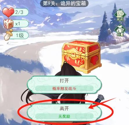 可能直接获得物品,也可能遭遇宝箱怪或女刺客(强制战斗,无法逃跑)。战胜怪物或直接获得物品的奖励相同。