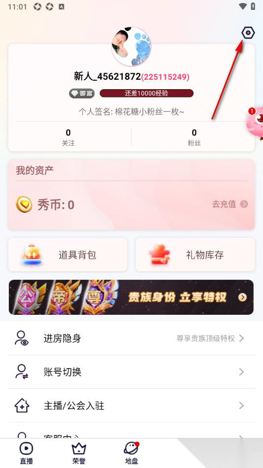 1.在手机上找到棉花糖直播APP这款软件,在页面下方的位置选择我的选项,将其点击即可进入。