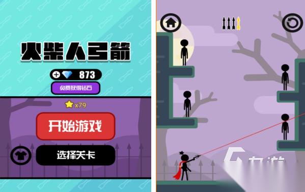 核心的玩法就是1对1或者是2对2远程对战。玩家可以操控火柴人弓箭手,在这一个满是障碍的场景中,通过调整力度还有角度将手中的箭飞射出去。可以攻击对手,也可以直接破坏整个场景。其中有一部分的键还会有特殊的效果,所以可玩性很高。主要的特色就在于物理谈到模拟,就需要考虑到风力,还有重力所造成的影响,另外在后期提升等级之后可以通过反弹键去有效实现绕后攻击。