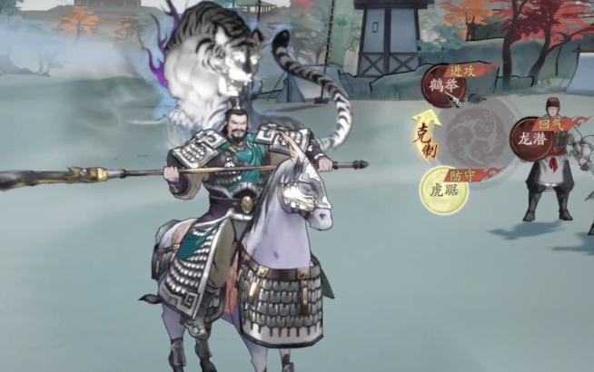 进入到单挑之后可以看到在场景里角色会有一组技能牌,每一个卡牌上都显示消耗的气力值,还会明确互相之间的克制,想要使出对应的技能牌,玩家就需要有足够的气力值才可以,在游戏里只要是大招都能克制普通的招式,普通招式可以刻制最基础的普攻击,如果在对战的时候,双方的招式恰好一样,它还会基于兵种之间的克制继续判定对面这就能让每一场战斗变得更加多变,在普通攻击中还会有三种不同的招式,防守、进攻和回气会循环克制,玩家需要根据实际的战场局势选择出招。