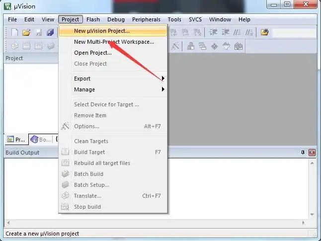 1、在keil c51软件中点击 Project -> New uVision Project -> 选择路径 -> 添加工程名称。