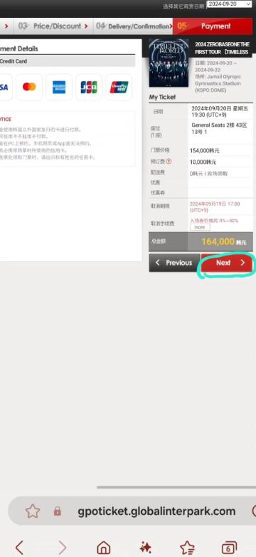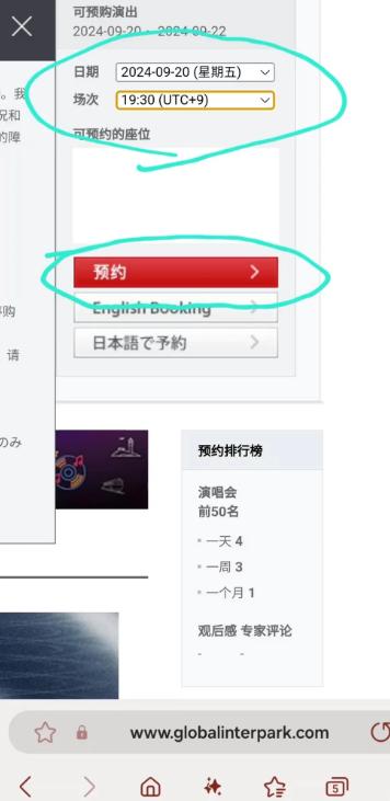 2. 登录itp,开票前1分钟打开你要抢的演唱会页面,不断刷新,到时间在窗口右边会显示购票按钮,选择日期和时间后,点击中文的【预订】,会弹出一个新窗口,后续步骤将在新窗口中进行。