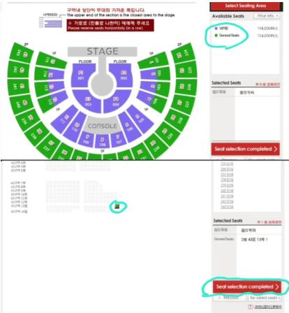 4. 选座:首先要进行人机验证,验证完后在页面右侧可以看到【available seats】,有分不同价格的座位,点击可展开选座;电脑可以快捷键tab+enter切换选区;看到座位亮起后点击座位,然后点【seat selection completed】