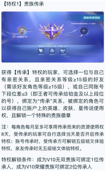 王者荣耀v10传承需要啥条件 王者v10传承规则