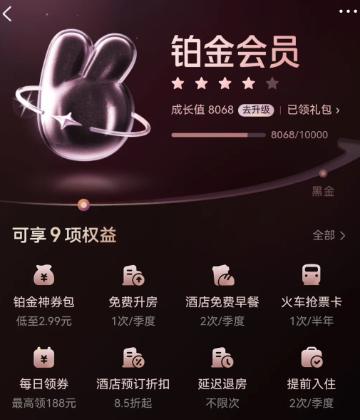 累计消费达到五千到9999元就可以升级到了,如点外卖、购买超市商品、预订酒店等,每笔消费都会贡献一定的积分。