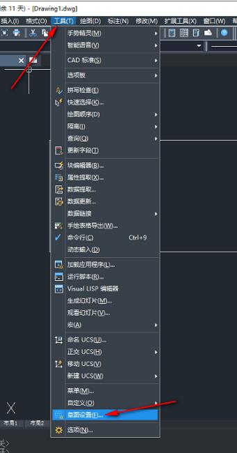 1、双击打开软件,点击上方菜单栏中的"工具",接着点击下方选项列表中的"草图设置"。
