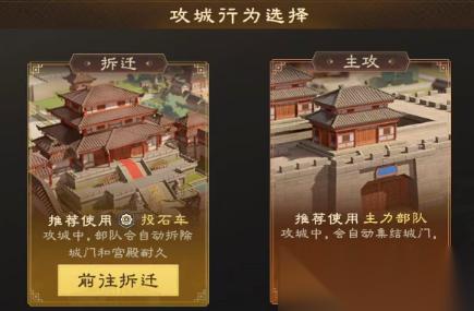 投石车主要用于攻城,以及进攻敌方建筑时使用。最主要应用场景在攻城,可在攻城大营集结时选择集结投石车用于拆除耐久。