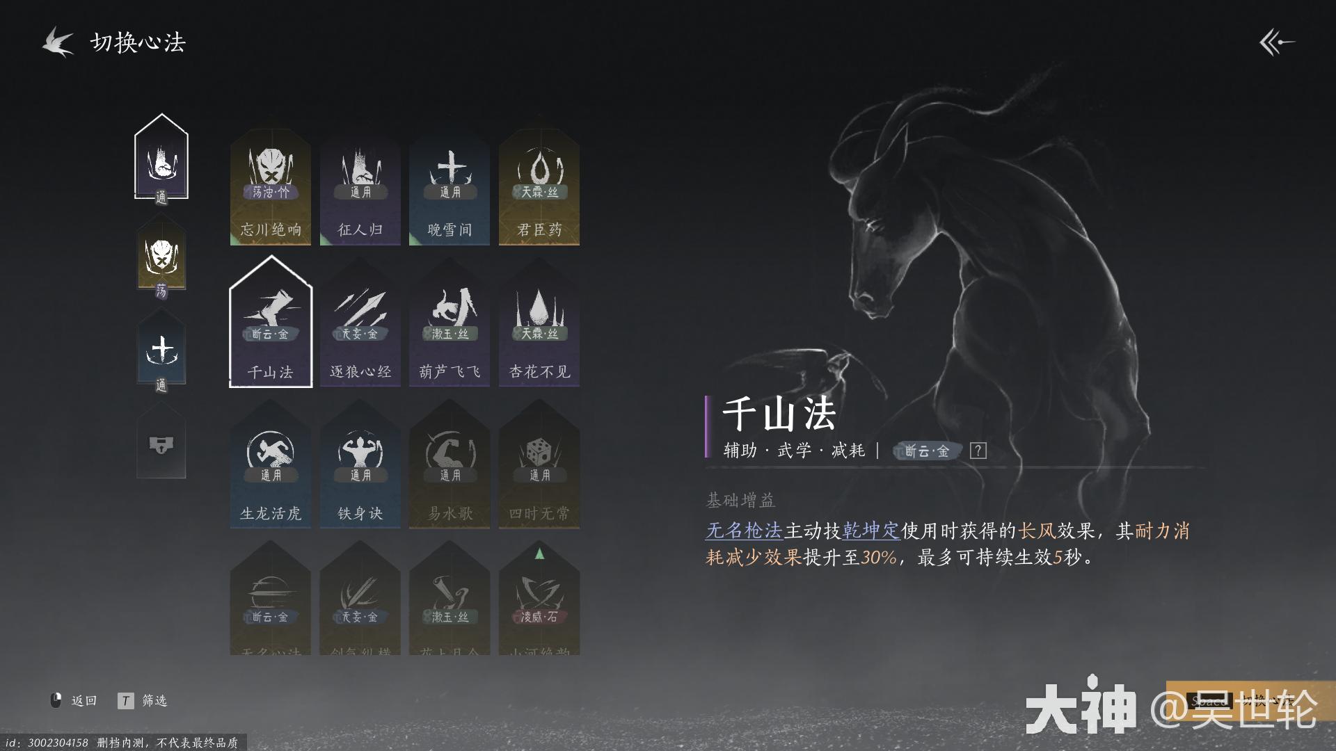 效果:无名枪法主动技乾坤定使用时获得长风效果,耐力消耗减少效果提升至30%,最多可持续生效5秒。