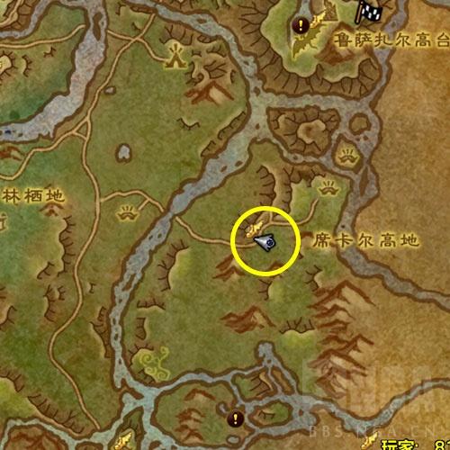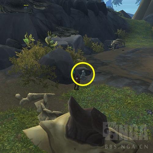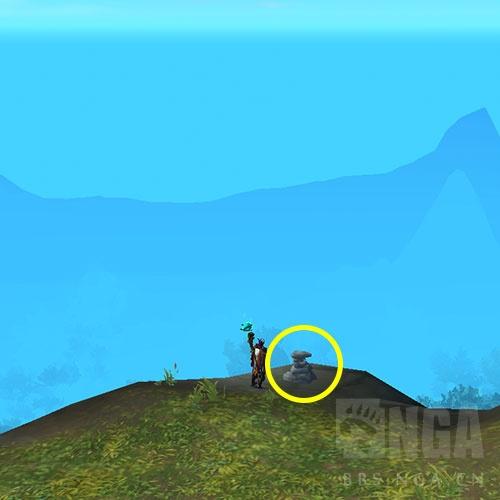 接下来我们来到 席卡尔 高地 北方的山丘上, 在山坡我们可以找到一个石堆. 和其交互~