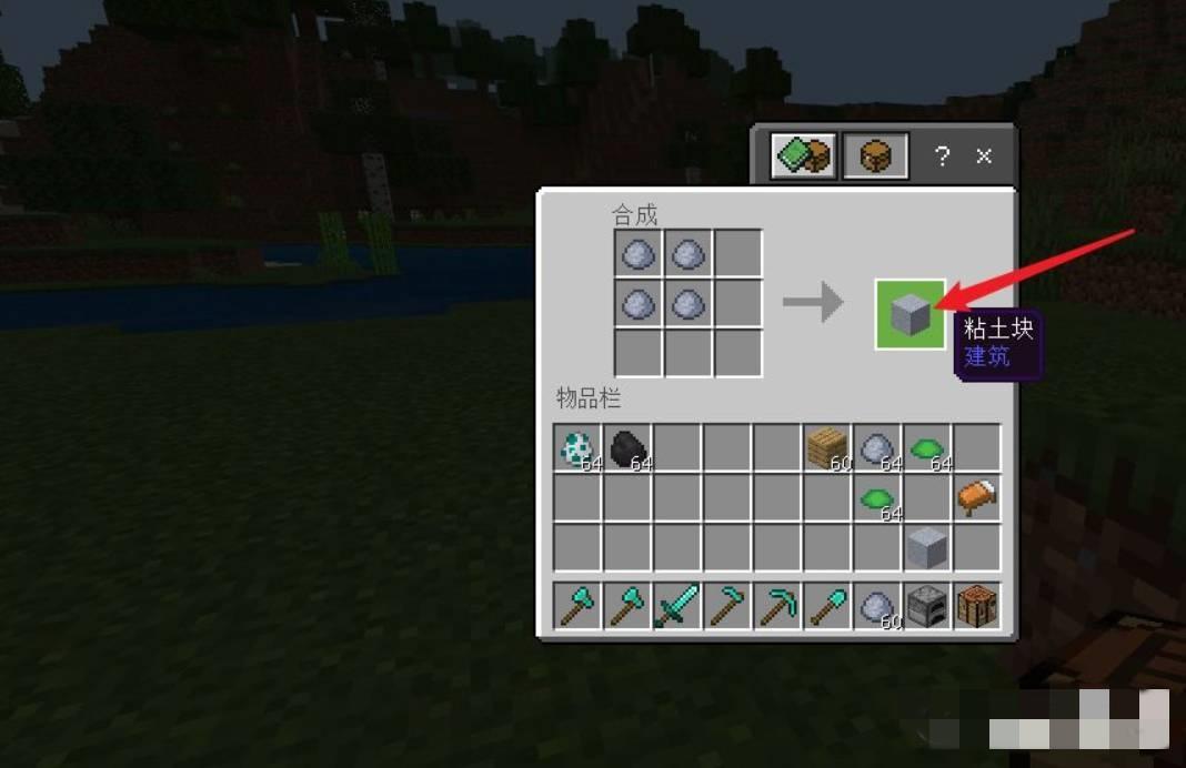 2、然后在背包中将4个黏土团合成黏土块。