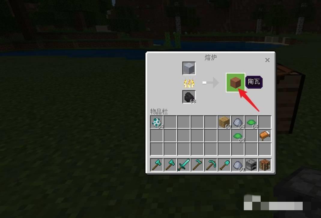 3、将黏土块放入熔炉并添加燃料,稍微等待一会即可获得陶瓦。