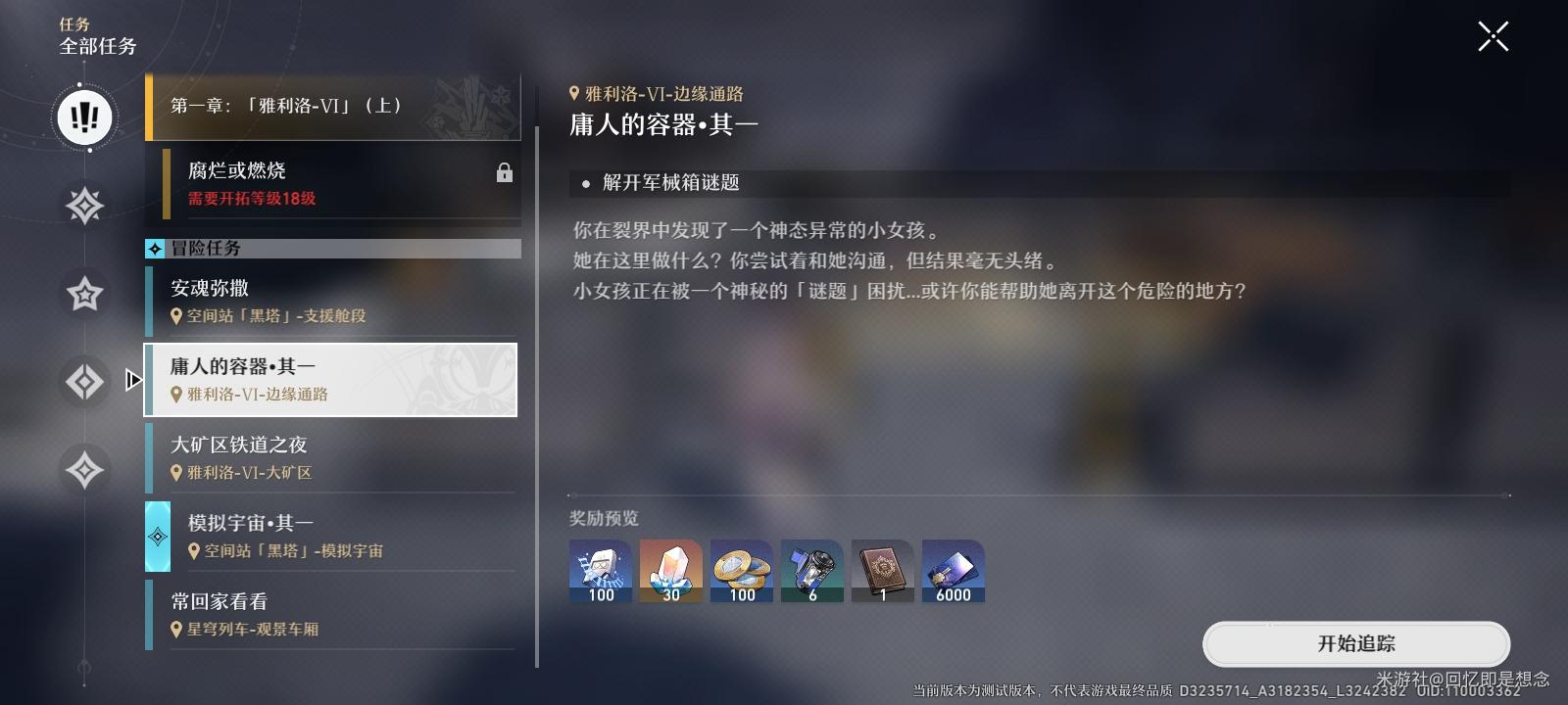 崩坏星穹铁道快上线了,在游戏中有很多任务让玩完成,完成后可以获得奖励,比如庸人的容器其一任务,那么崩坏星穹铁道庸人的容器其一任务怎么做?下面就给大家带来崩坏星穹铁道庸人的容器其一任务攻略。