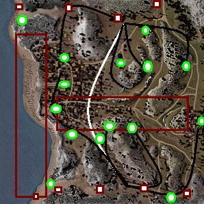 上出生点右路有一个凹向本方这边的高地,这个位置很适合HT卡位,想要强吃这个位置HT的对手就必须暴露在山坡后直射火力(也许还有火炮)的覆盖下,属于一个强力防守点——但是如果丢了这里,右路基本就破了。