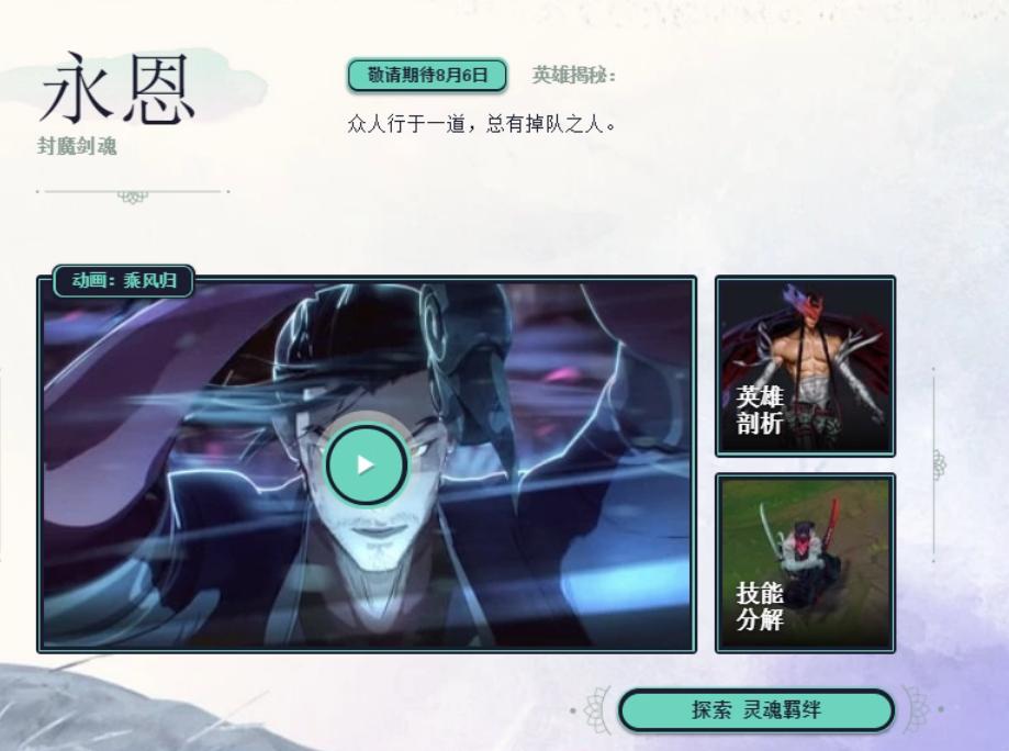 LOL下个新英雄已经确定是永恩,而且会在绽灵节期间上线,在官方的宣传动画中亚索去找永恩,日期是7月24日,那么永恩什么时候上线?下面就给大家带来LOL永恩上线时间。