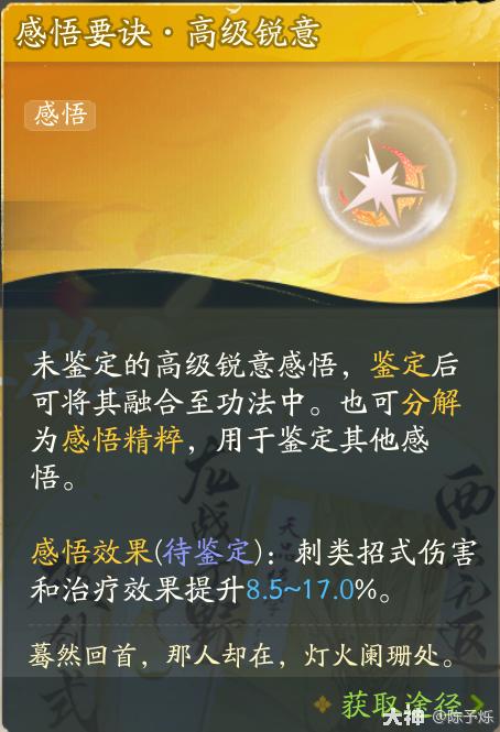 例如下面这个【锐意】就比较适合飞雷刺流派使用,因为雷刺主要是依靠刺击输出。