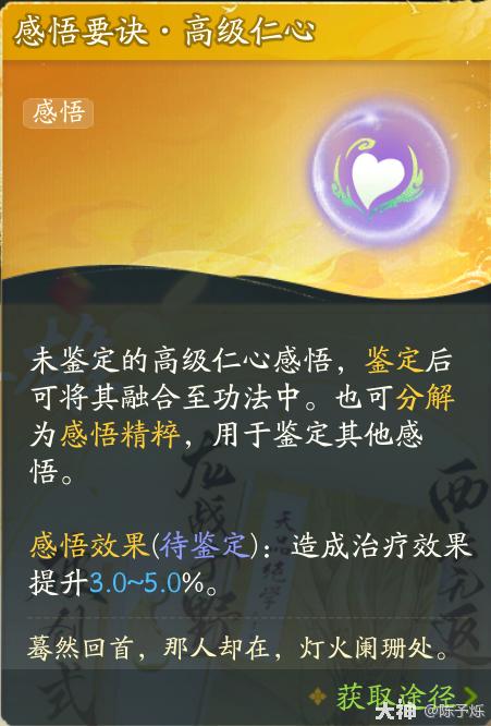 例如【治疗职业】携带【木系反应珠】【天资珠】【根骨珠】【高级仁心】招式类珠,看你是轻剑奶还是护手奶,按照使用最多的招式标签来选择。