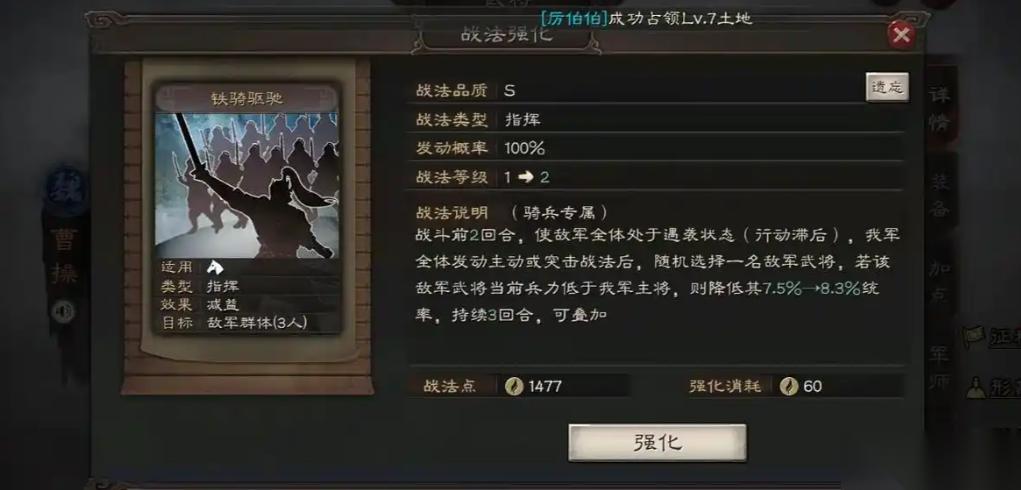 铁骑兵作为骑兵中的精英兵种,拥有高防御和强攻击力,讨伐时需要特别注意兵种克制和战术搭配。枪兵是克制铁骑兵的最佳选择,因为枪兵对骑兵有天然增伤效果,尤其是携带破军爆发类战法时能打出更高伤害。弓兵也能发挥作用,利用远程优势避免近战接触,但需要搭配枪兵形成联防。火攻战术在狭窄地形效果显著,火枪手或火炮手能对铁骑兵造成大量伤害。