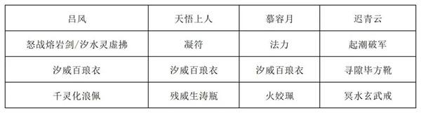 第一、二回合:吃法力丹,天悟上人打出三清化水符、五行化水咒,吕风复制三清化水符并全部打出,迟青云打出五行化水咒和衍水决,天悟上人打出断水龙威,林瑶打出燎原决,涅槃咒和战意决。如果有火灵气可以将林瑶的出牌顺序提前让战意决吃到火灵气的加成。迟青云打出轮回断水击。