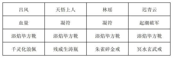 第四回合:吃战意丹,林瑶打出燎原决,迟青云打出五行化水咒和衍水决,吕风复制衍水决并打出,如果有火灵气,天悟上人打出五行化水咒转水,多余的火灵气林瑶可以打出强化战意决,如果全都是水灵气就不打,迟青云打出轮回断水击。