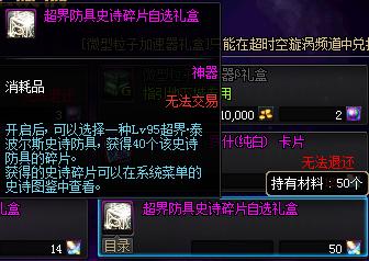 超时空漩涡新增[超界防具史诗碎片自选礼盒],50个[反物质粒子]可兑换。