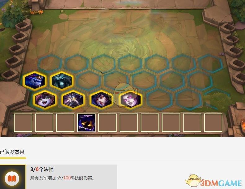 2、这套阵容的核心点在于6法后技能伤害增加,同时元素回蓝快。鸟盾和小菊只是为了让后排防技能的肉盾而已,重点在于阵容成型后的爆发,而不是很吃卡的星级。换句话说,3元素6法师你可以带几个1星的挂件,打死还没成型的3~4个三星卡阵容。