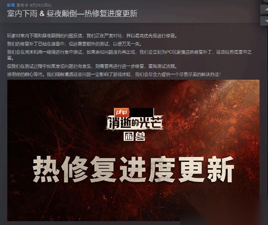 昨日我们曾报道,一些玩家反馈,游戏出现了“室内下雨”和“昼夜颠倒”这种影响游戏体验的bug。