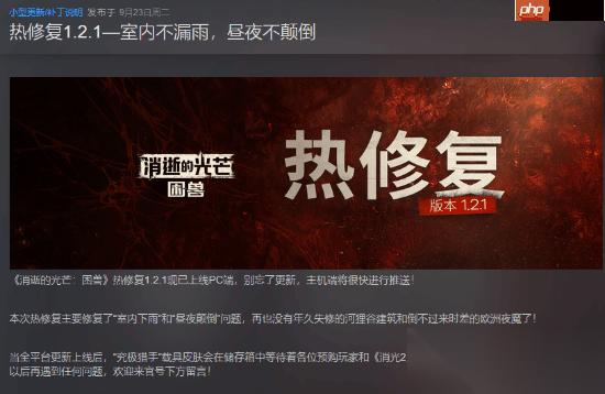 消逝的光芒 困兽 热更新上线PC 修复“室内下雨”和“昼夜颠倒”