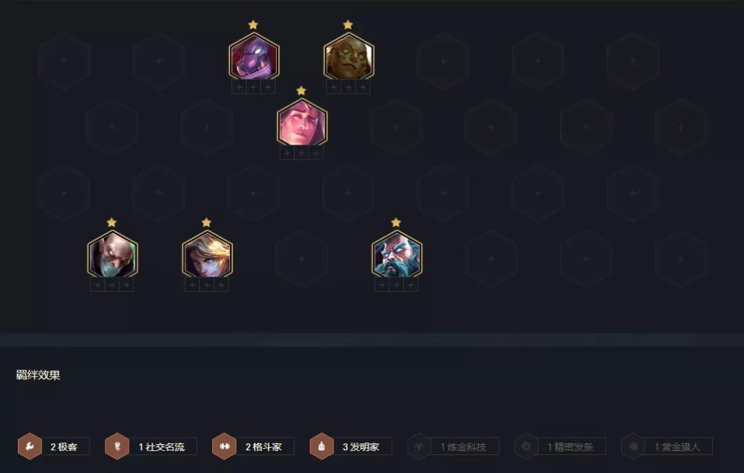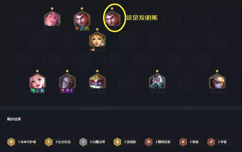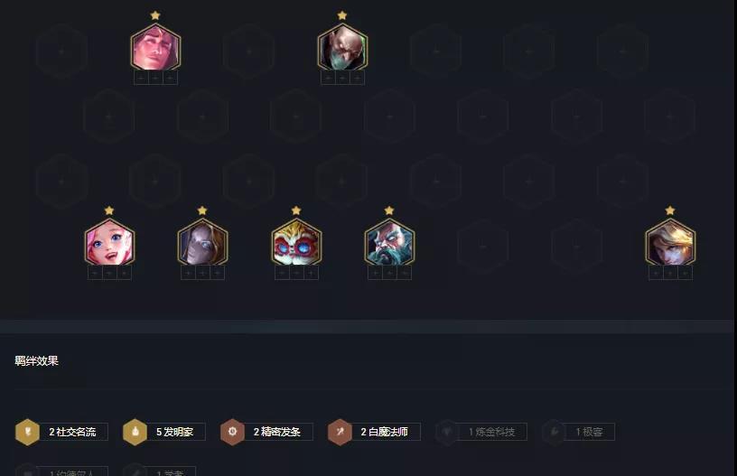阵容羁绊:5/7发明家 2名流 2白魔 2学者 2精密