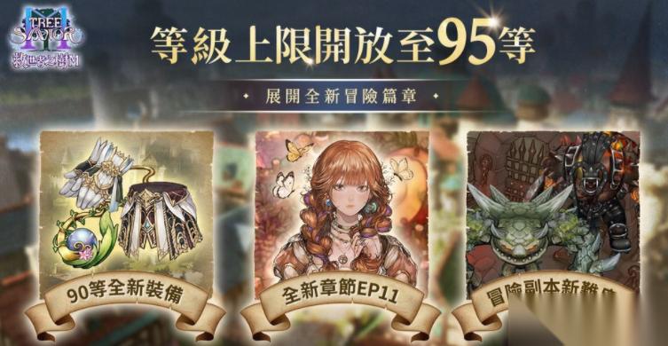 官方表示,崭新章节 EP.11 盛大登场,启示者将挺身而出,前往水果森林拯救「女神拉达」,迎击邪恶势力,展开一场惊心动魄的旅程。本次改版同步将游戏等级上限提升至 Lv.95,推出 Lv.90 巅峰装备「列迪纳司套装」。并开放新难度的冒险副本 ——「记忆之石」、「水晶回廊」、「裂变特异点」、「混沌深渊」。