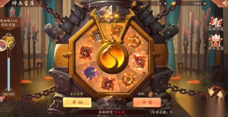 获取大夏龙雀刀的主要途径包括限时活动、神兵秘库抽奖及碎片兑换。游戏定期开放赤金神兵专属活动,玩家需通过参与秘库寻珍或限时兑换等玩法积累神兵碎片。例如赤金神兽煌威青龙现世活动中,大夏龙雀刀碎片曾作为珍稀资源加入兑换列表。部分版本更新会推出累充或累计消费任务,达到指定条件可直接领取完整神兵或碎片。需注意,神兵碎片通常需集齐80-100片方可合成,平民玩家建议优先参与免费活动积攒资源。