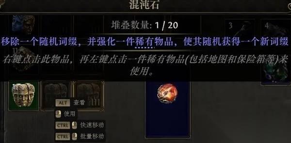混沌石 (Chaos Orb) ,简称C 。基础计价通货,主要用于交易 常用物品。