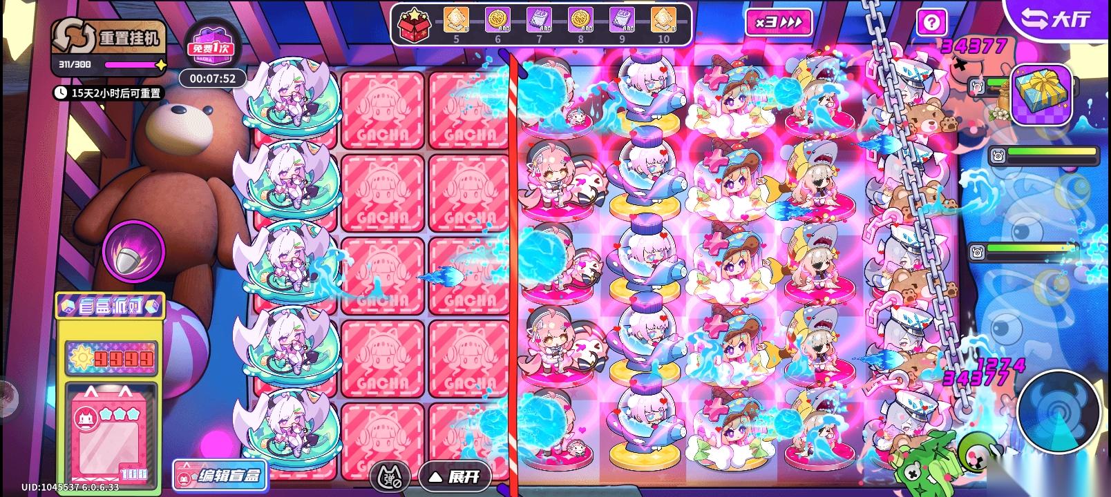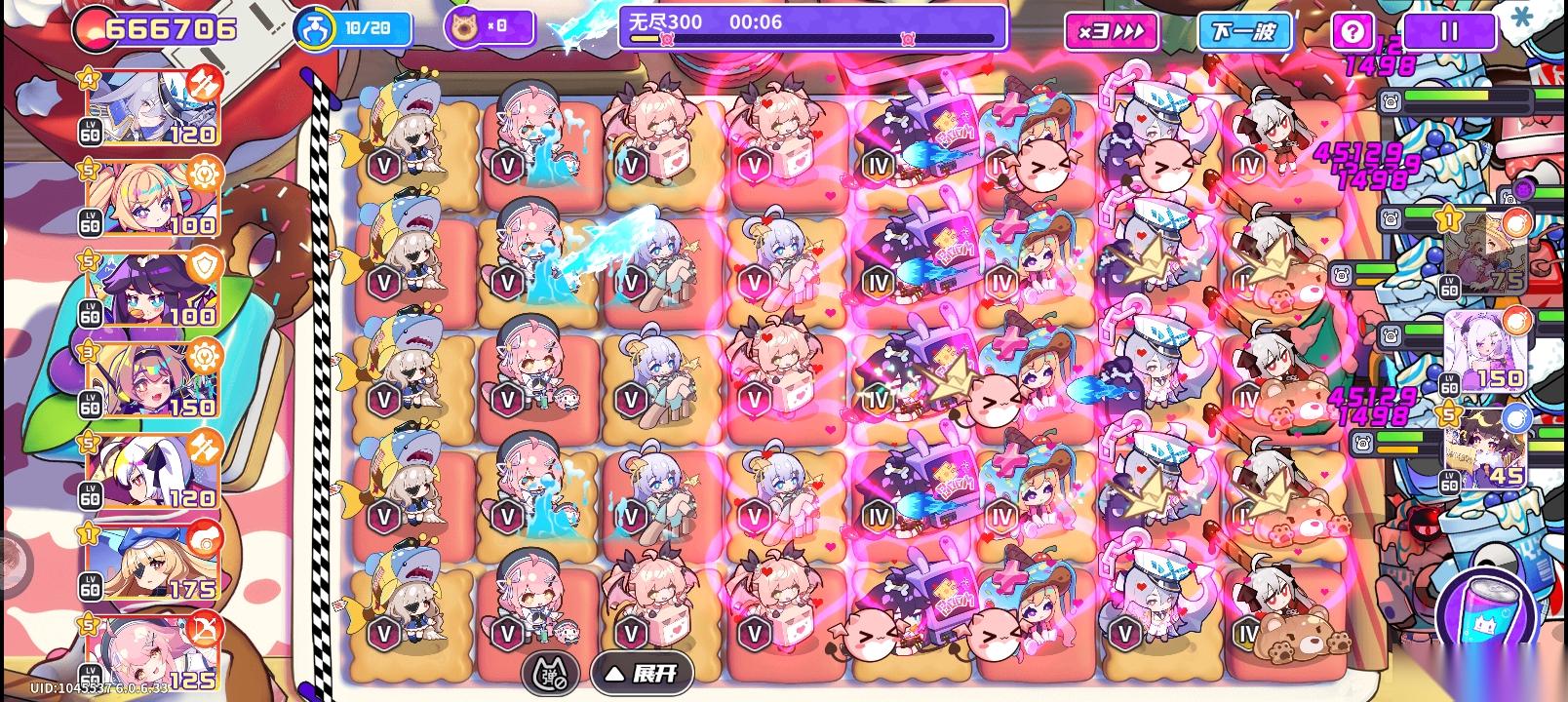 放置作战,这个很重要能打多少打多少,奖励上限300层,可以先让敌方突破防线。再上生产角色慢慢布阵,布完了再打。右上角问号点一下可以重置一些角色的冷却。