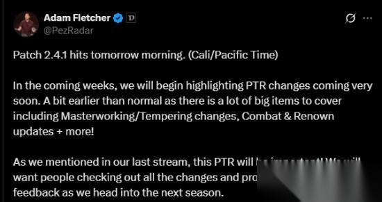 据《暗黑破坏神4》社区总监Adam Fletcher透露,本次PTR的改动预览将提前向玩家开放——相较以往测试周期,此次披露时间大幅提前。他在公开声明中强调本次更新规模空前,涉及精炼锻造系统升级、战斗平衡性调整、名望系统迭代等多个维度,需给予玩家充足时间消化信息。