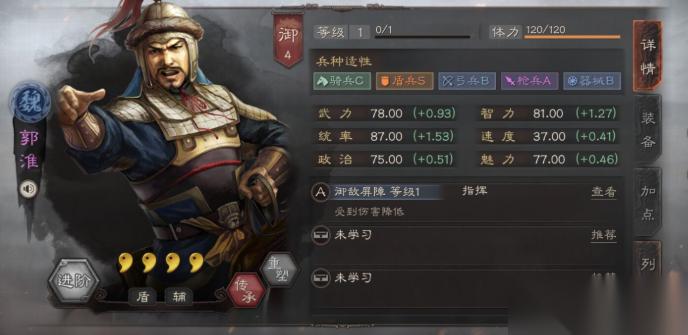 刘备推荐携带B级战法坐守孤城或A级暂避其锋,前者提供即时群体治疗,后者能保护核心输出。四星武将战法优先选择落凤纵兵劫掠等控制技,或避实击虚骁勇善战等定向输出技。特别注意避免配置准备型战法,因四星队生存能力有限,回合数拖长易导致战损加剧。