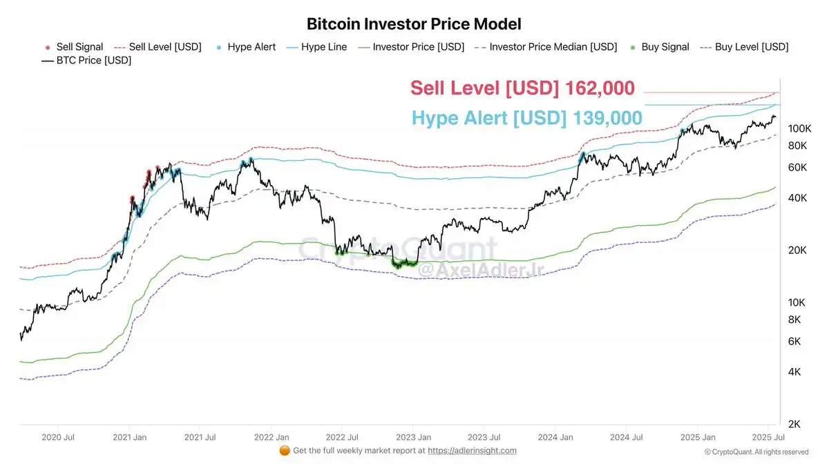 截至今日 11.7 万美元的价格,比特币正处于投资者价格中位数(9.2 万美元)和炒作警报水平(13.9 万美元)之间的增长区间。这表明,买入活动仍然受到市场参与者的支持:只要价格保持在他们的舒适区之上,他们就愿意持有或增持仓位。与此同时,我们尚未进入过度乐观的阶段,在不出现严重过热风险的情况下,比特币仍有进一步上涨至 13.9 万美元的空间。
