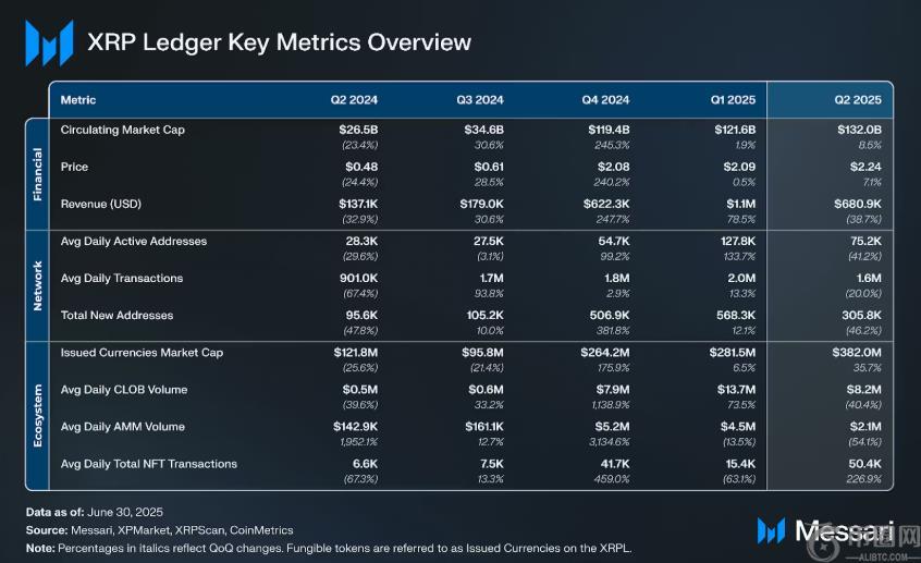 著名分析公司 Messari 发布了一份关于2025年第二季度 XRP 生态系统状况的详细报告。