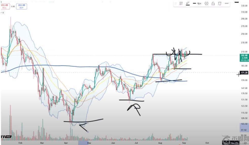 交易员关注的另一个代币是 Solana (SOL)。Cheds 表示,Solana 似乎正在努力突破 200 美元,但目前进展缓慢。不过,Cheds 表示,只要多头守住关键水平,Solana 就可能继续上涨。
